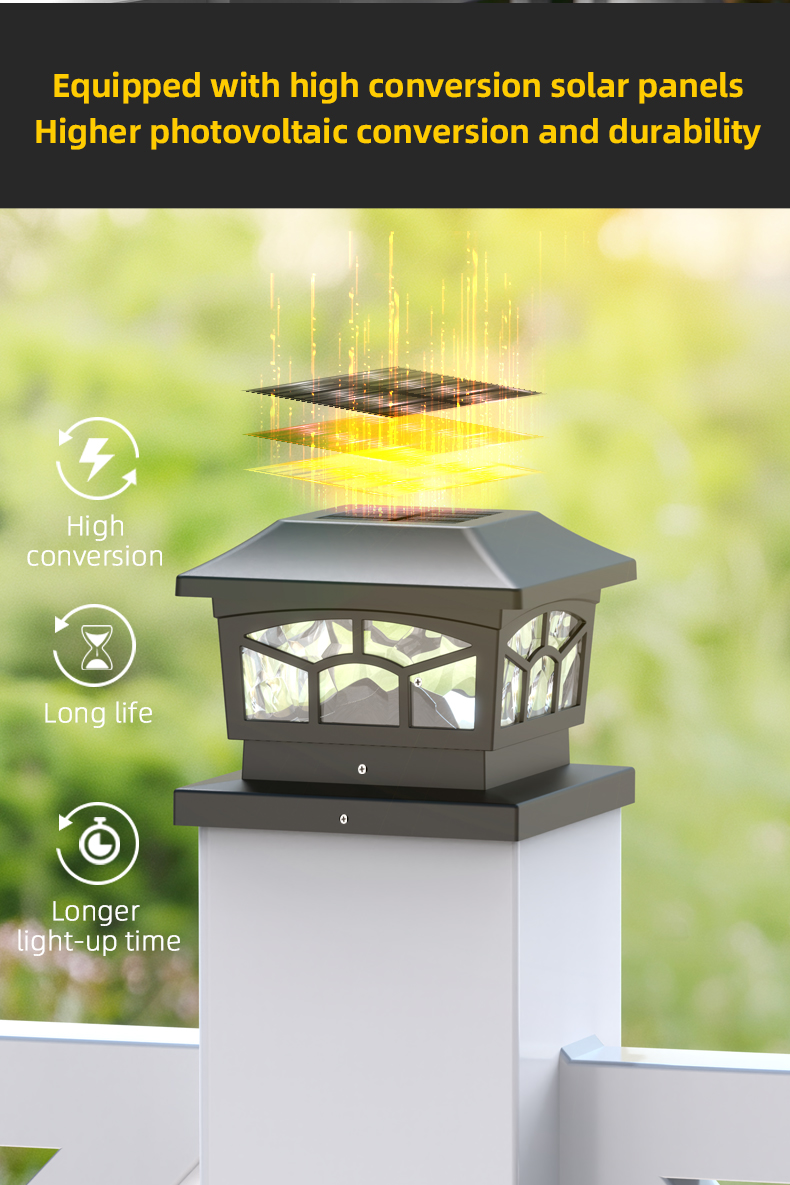 8 LED Solar Post Cap Light של Landsign מנורות עמיד למים חיצוניות בעלות מערכת רגישה לאור, עמידה למים חיצונית חזקה וקל להתקנה, מתאימה לקישוט החצר, גינה וכו'.